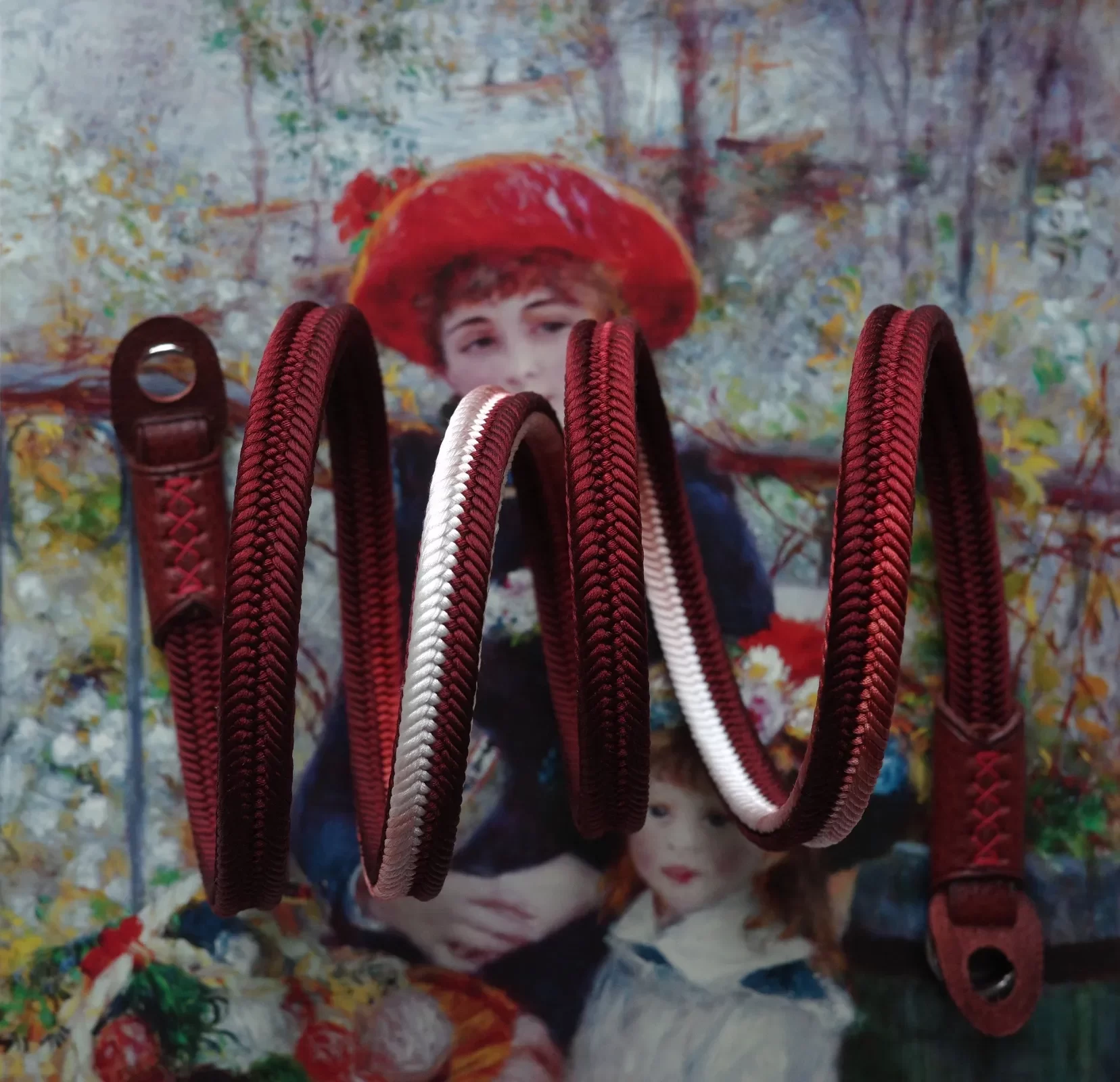 Crown Red is a handmade camera neck strap made with Japanese kumihimo silk and genuine leather. Comfortable, durable, and ideal for premium cameras.Crown Red is a handmade camera neck strap made with Japanese kumihimo silk and genuine leather. Comfortable, durable, and ideal for premium cameras.