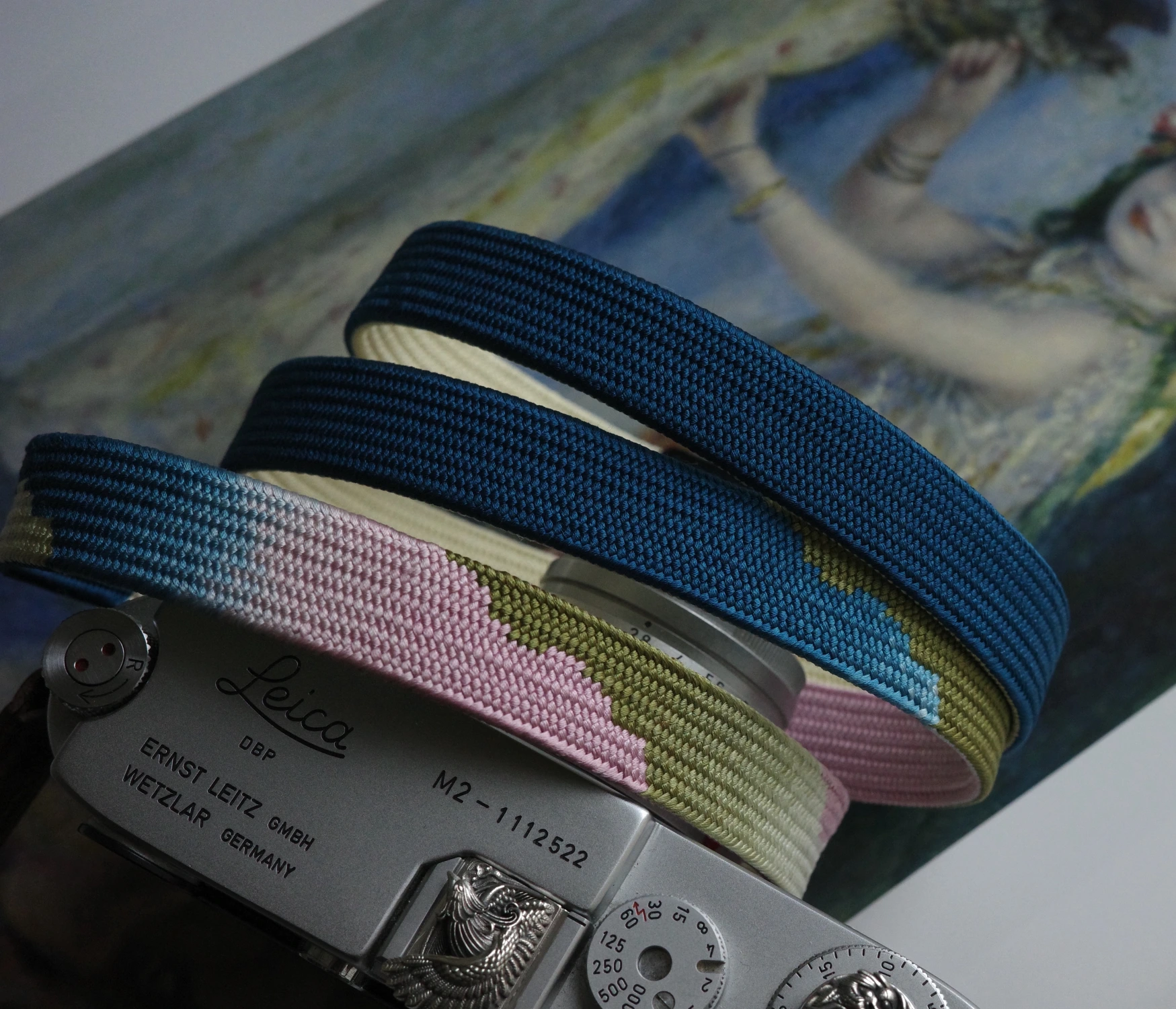 It’s a flat, wide, soft camera strap.